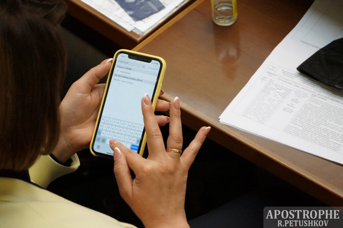 У середу, 2 червня, під час засідання Верховної Ради народна депутатка від партії ВО "Свобода" Оксана Савчук шукала в інтернеті "червону руту" і "чортополох", при цьому довго розглядаючи різні квіти.
