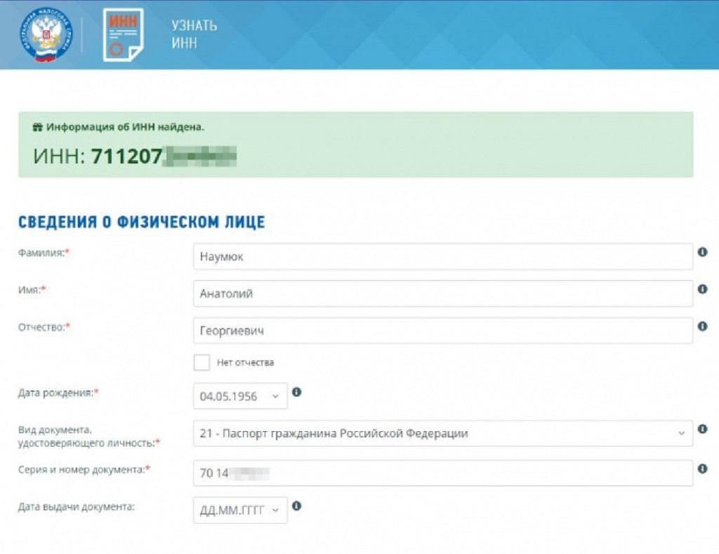 Крім того, Анатолій Нaумюк має індивідуальний податковий номер платника податків в Росії, прив"язаний до його паспорта громадянина РФ. Це журналісти підтвердили через сайт російської Податкової служби.