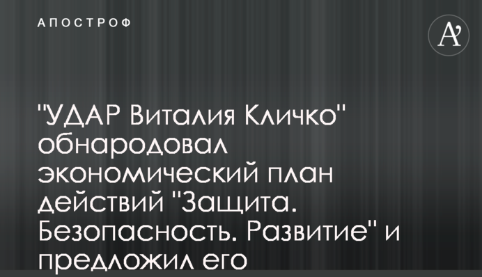 Економічний план дій "Захист. Безпека. Розвиток" містить 15 невідкладних кроків для стабілізації соціально-економічної ситуації в Україні та 10 ключових напрямів для забезпечення сталого економічного розвитку на перспективу. В його основу покладено інноваційно-індустріальну модель економіки, яку в "УДАРі" вважають найбільш оптимальною для України.