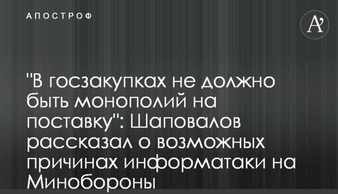 Колишній заступник міністра оборони В"ячеслав Шаповалов вважає, що за інформатаками на Міністерство оборони можуть стояти окремі представники бізнесу, які бажали б повернутися до монопольної системи закупівель держорганами.