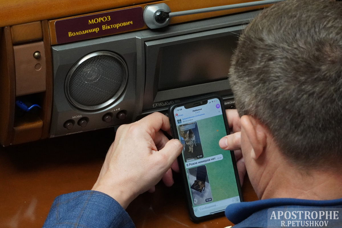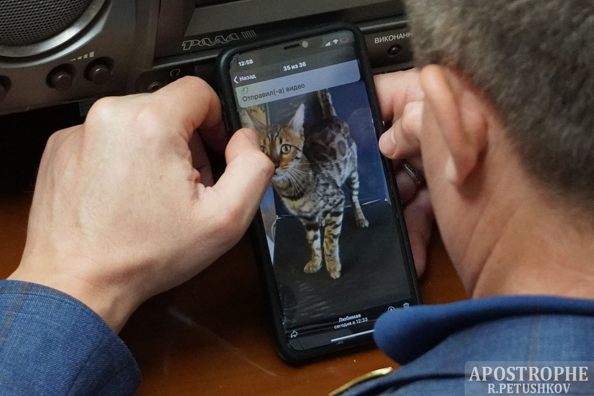 У Верховній Раді народний депутат від ОПЗЖ Володимир Мороз захоплено розглядав зображення котів в телефоні між голосуваннями.