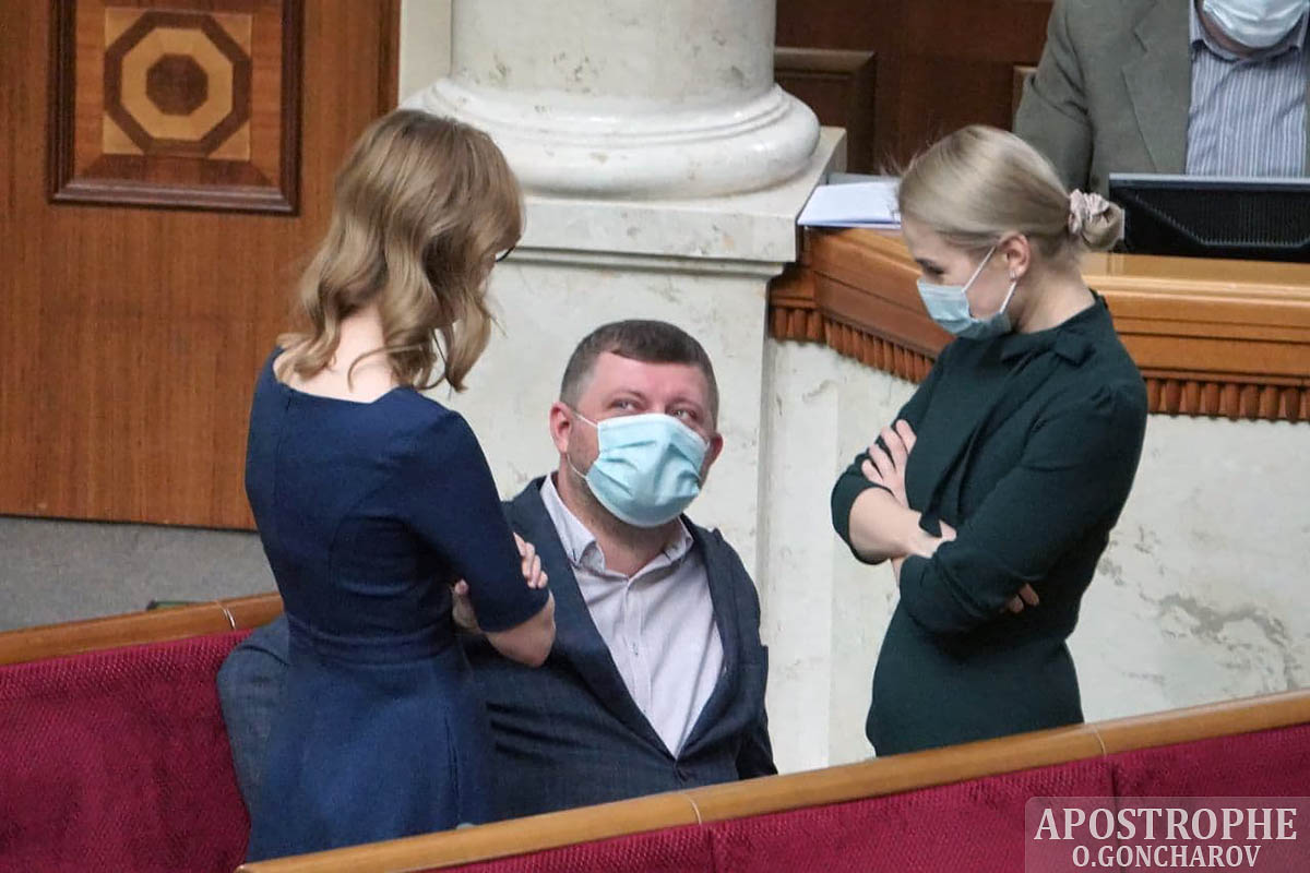 Як видно на фото, Корнієнко приєднався до розмови Роксолани Підласої зі своєю колегою по партії Анастасією Радіною і їхня розмова викликала у нього зацікавлення. Жінки щось обговорювали і при цьому активно жестикулювали. Згодом до компанії нардепів приєдналися і інші політики.