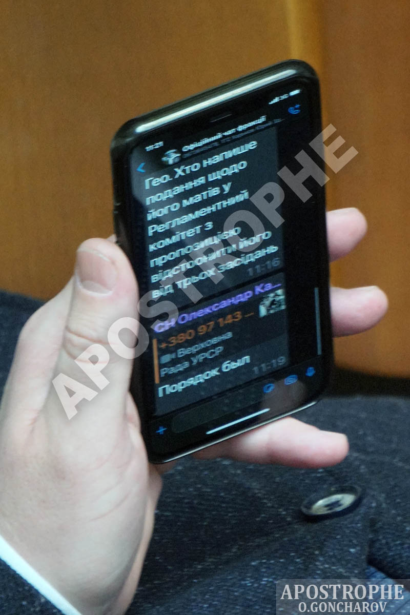 Про це свідчить фото переписки в чаті президентської фракції, яка потрапила в об'єктив камери кореспондента "Апострофа".