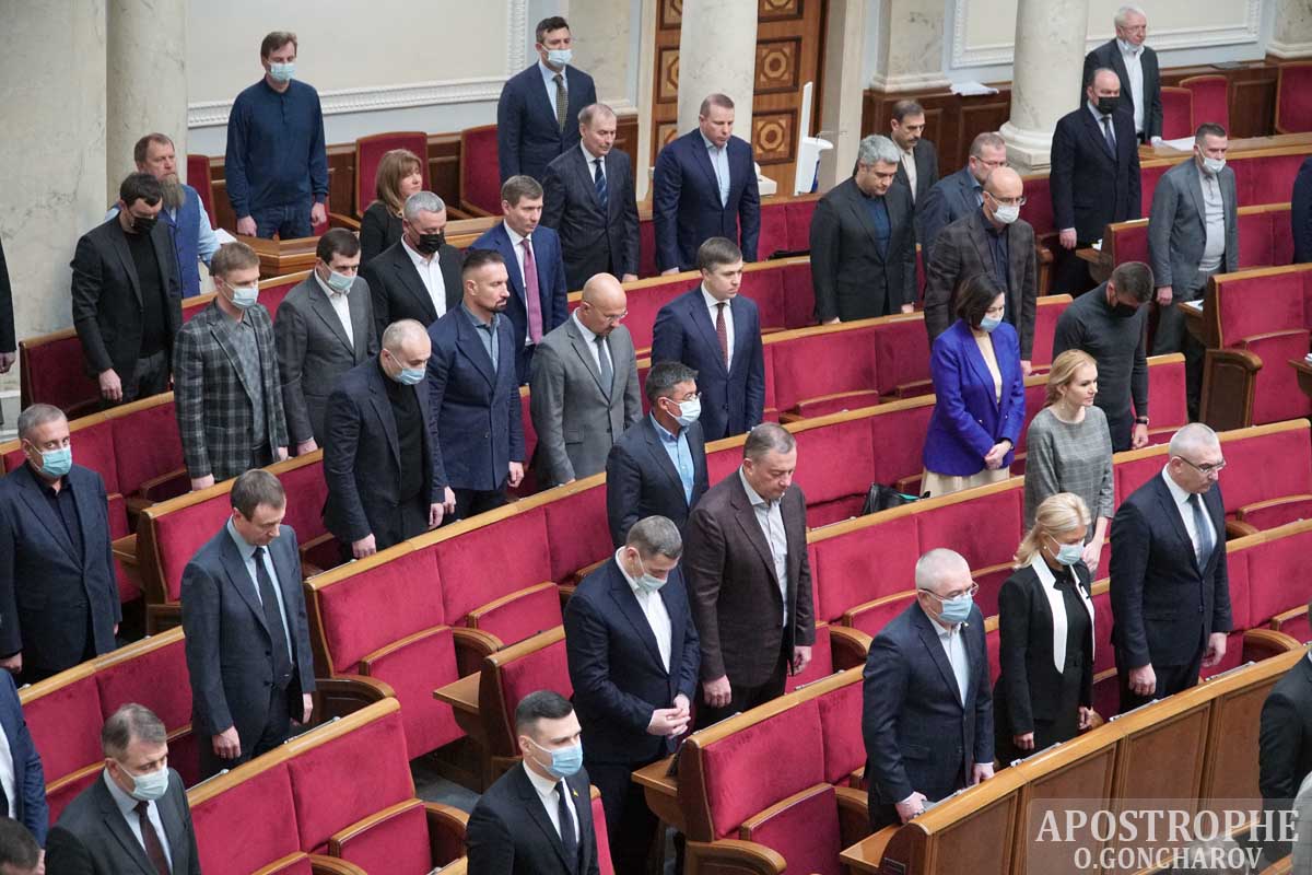 Пам'ять жертв Голокосту нардепи вшанували хвилиною мовчання. Вони встали зі своїх місць і схилили голови.