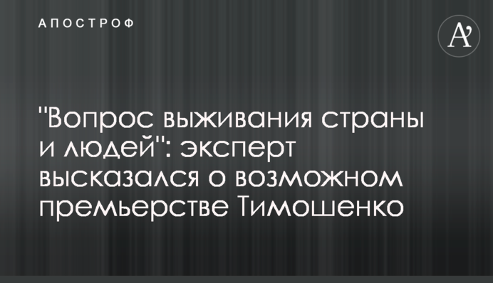 Експерт вважає, що прем"єрство Тимошенко –"питання порятунку економіки та виживання простих людей, питання збереження країни та її незалежності, а також запобіжник від соціальних бунтів".