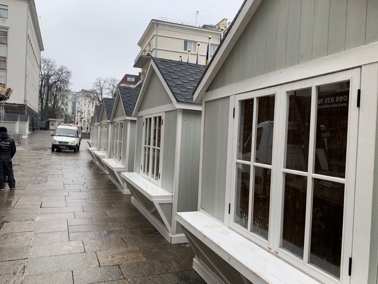 Також на території Офісу президента встановлюють маленькі дерев'яні будиночки, які, очевидно, будуть зоною святкового фуд-корту.