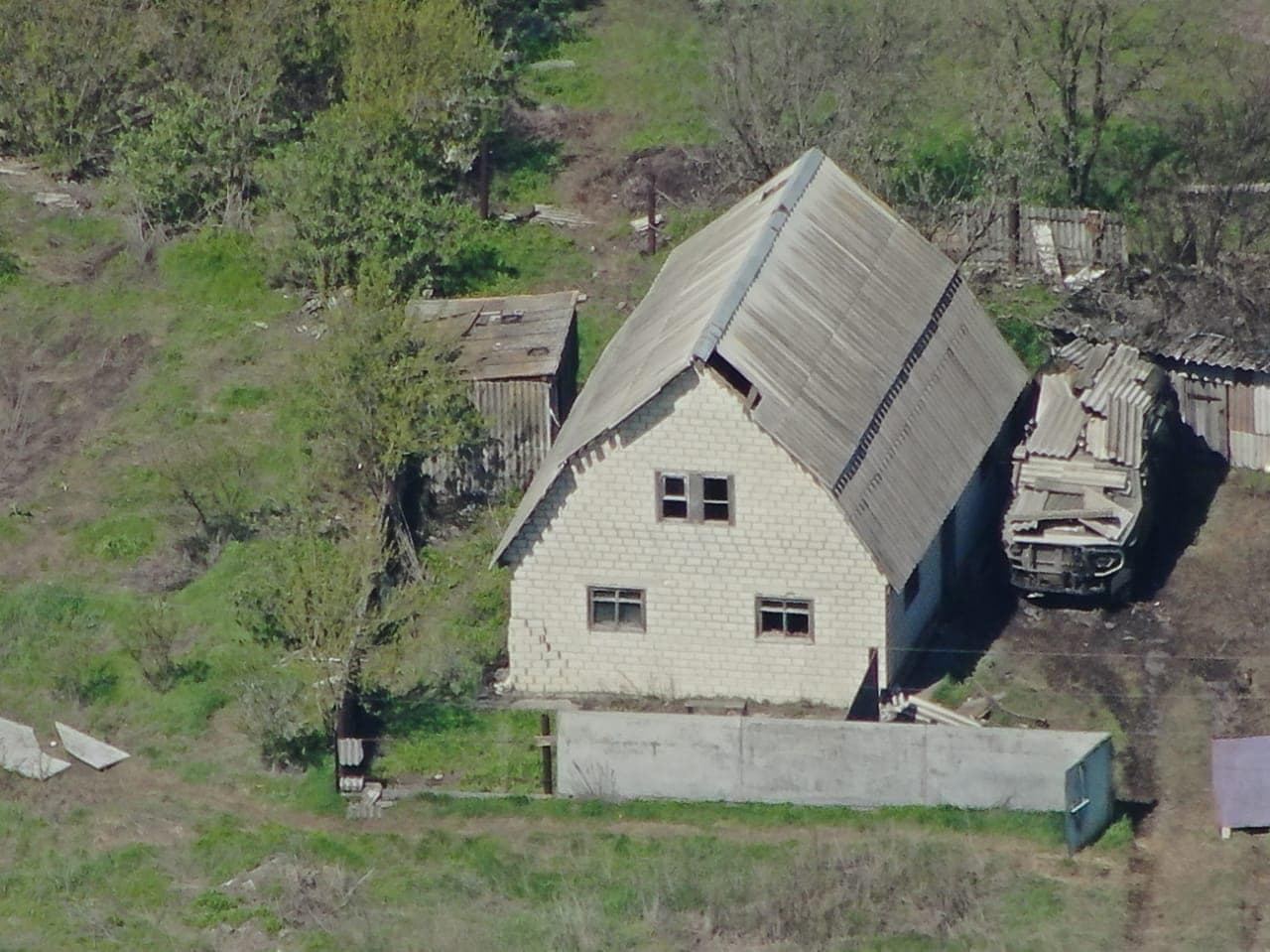19:10 Аеророзвідники виявили танк, бойовий броньований автомобіль та бліндажі з живою силою ворога. Техніку росіяни традиційно ховали на подвір'ї, прикривши шифером. Українські бійці постаралися на славу – всі цілі знищено.