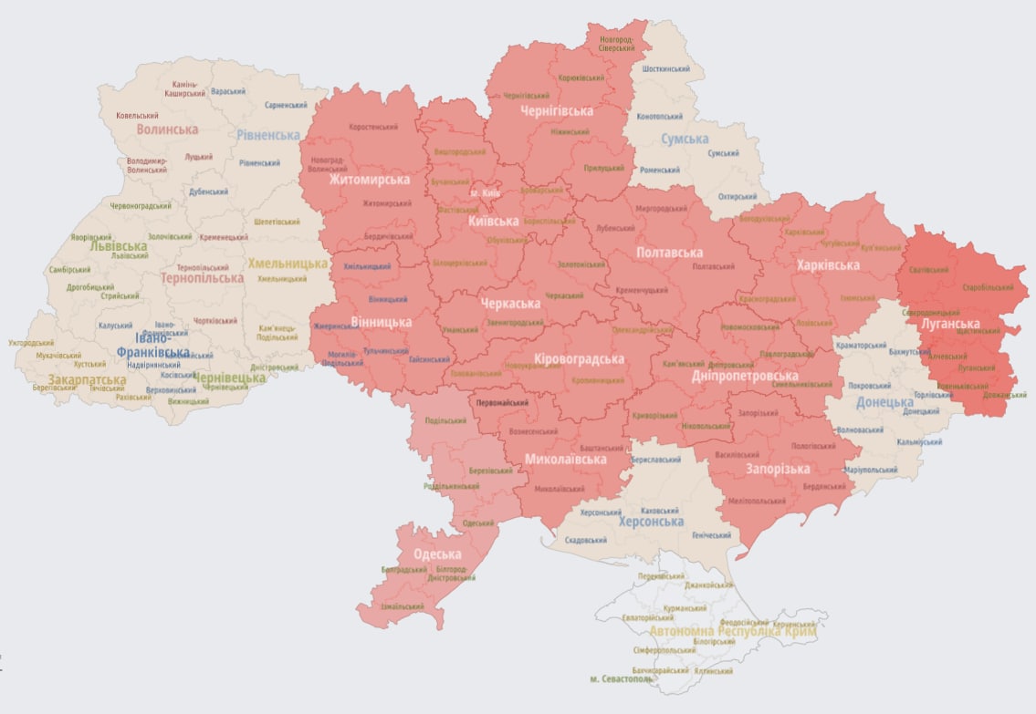 11:33 На більшій частині України оголошено повітряну тривогу.