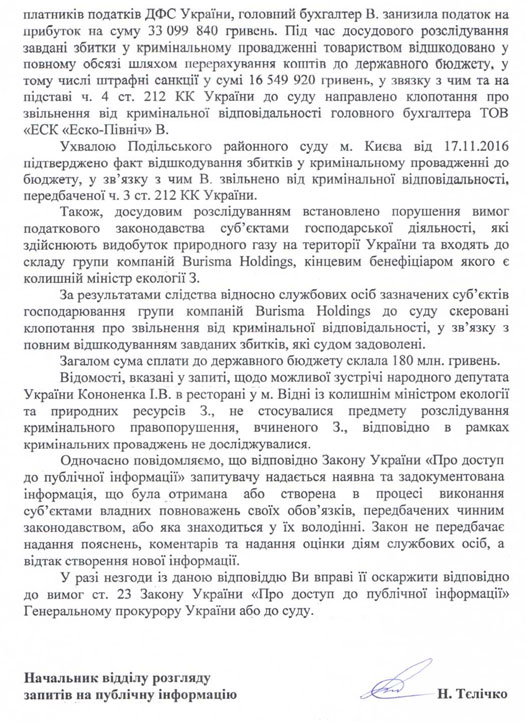 Генеральна прокуратура припинила розслідування по епізодах, в яких фігурують компанії колишнього міністра екології та природних ресурсів Миколи Злочевського.