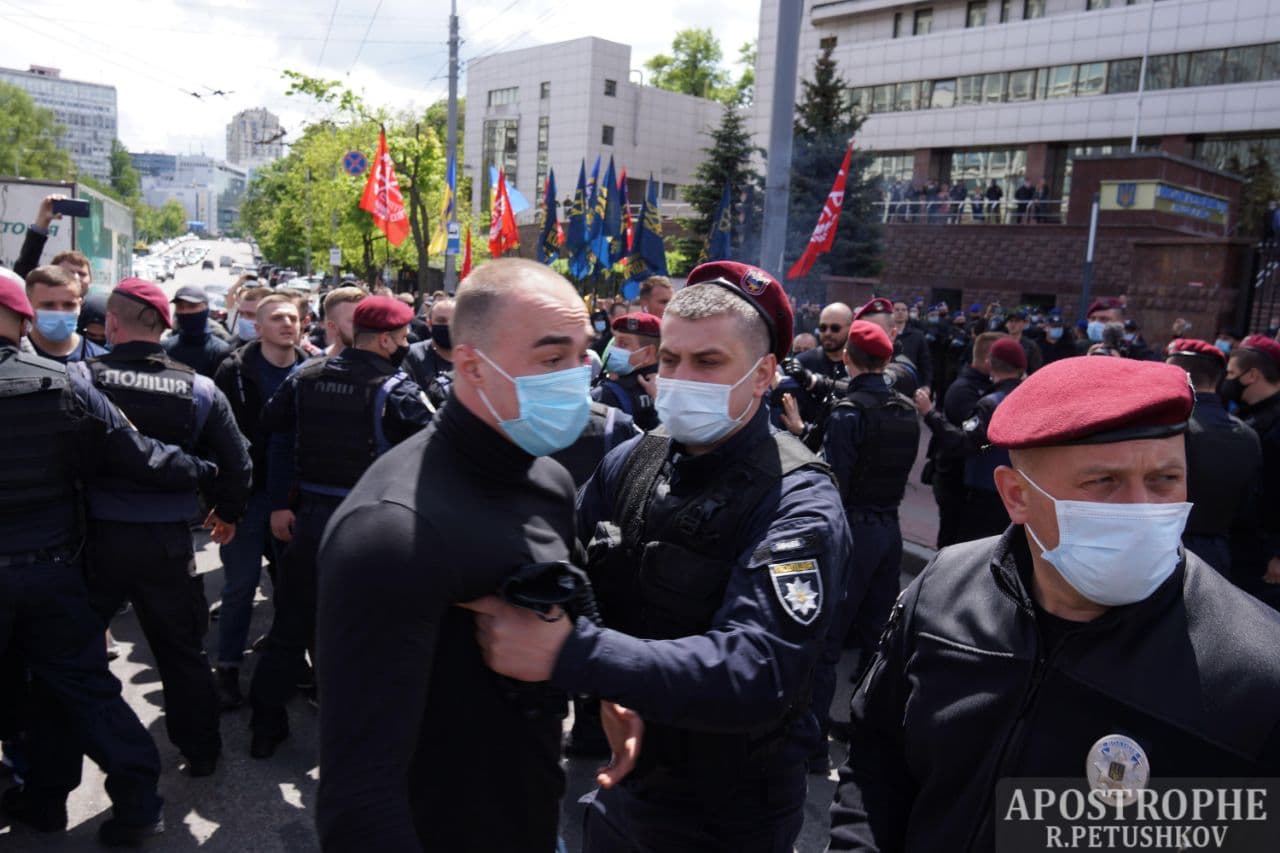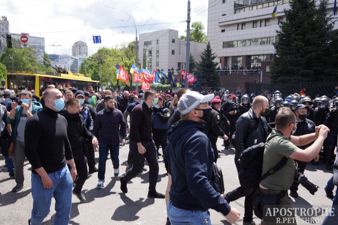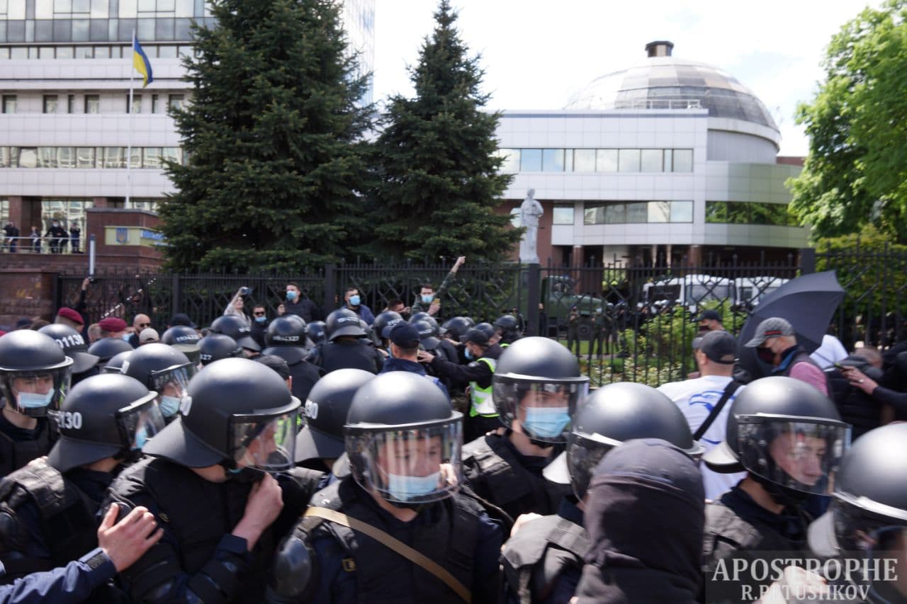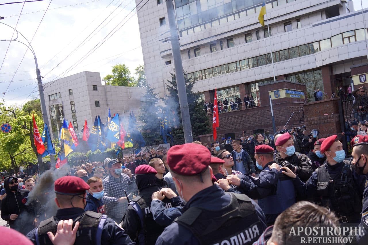 У п'ятницю, 21 травня, Київський апеляційний суд розглядатиме апеляційні скарги на рішення суду першої інстанції про цілодобовий домашній арешт народного депутата Віктора Медведчука. Біля приміщення суду на Солом'янській площі сталися сутички між прихильниками і противниками політика.
