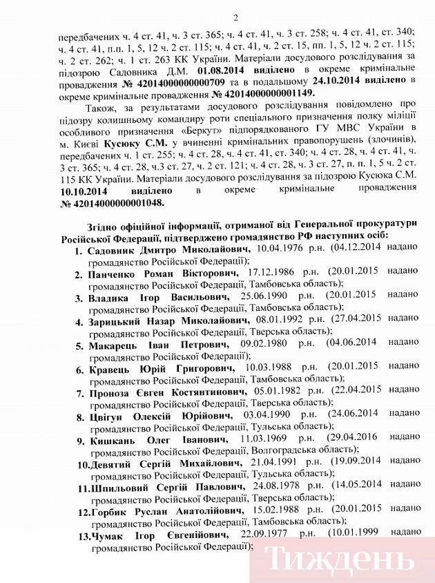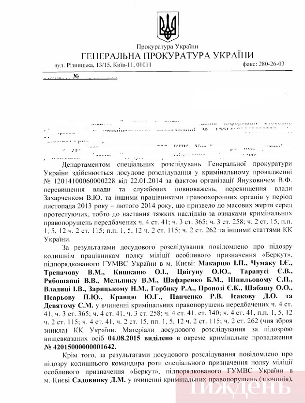 Про це повідомляє "Тиждень.ua" з посиланням на документ з Генеральної прокуратури України.