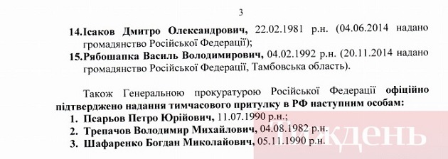 Згідно відповіді російських прокурорів українським правоохоронцям, з 2014 року громадянами РФ стали 14 колишніх бійців роти "Беркут", троє отримали тимчасовий притулок. Також наголошується, що один з колишніх "беркутівців" був громадянином РФ з 1999 року.