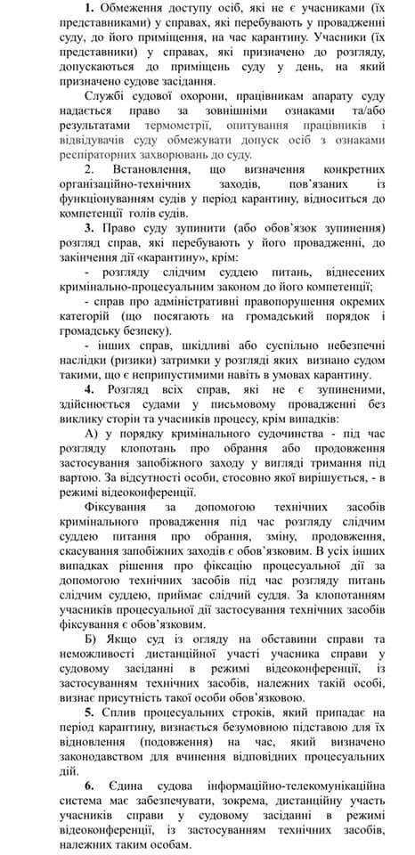 За його словами, в сфері здійснення правосуддя через введений карантин виникли суттєві труднощі. Тому розглядається варіант здійснювати діяльність дистанційно. Але при цьому основна діяльність судів буде зберігатися і особливо це стосується вирішення пріоритетних справ.