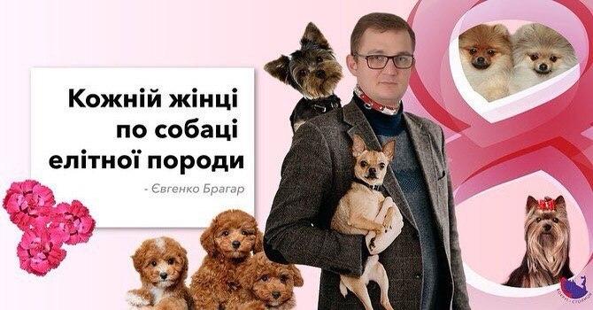 Скандальний народний депутат від "Слуги народу" Євген Брагар, яка порадид пенсіонерці продати собаку, щоб оплатити комунальні послуги, пообіцяв кожній жінці подарувати породисту собачку.