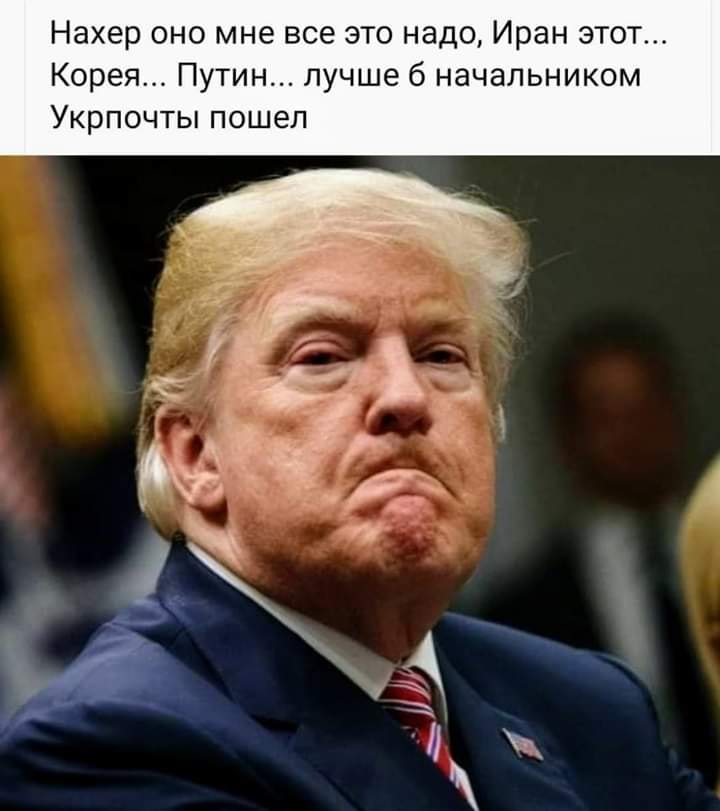 Ще одна ілюстрація зображає американського президента в глибокій задумі. "Навіщо воно мені все це треба. Іран ... Корея ... Путін ... Краще б начальником Укрпошти пішов", - сказано в підписі до фотожаби.