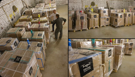 "Посилка з понад 500 дронами прямує до України", - зазначив посадовець, додавши фото.