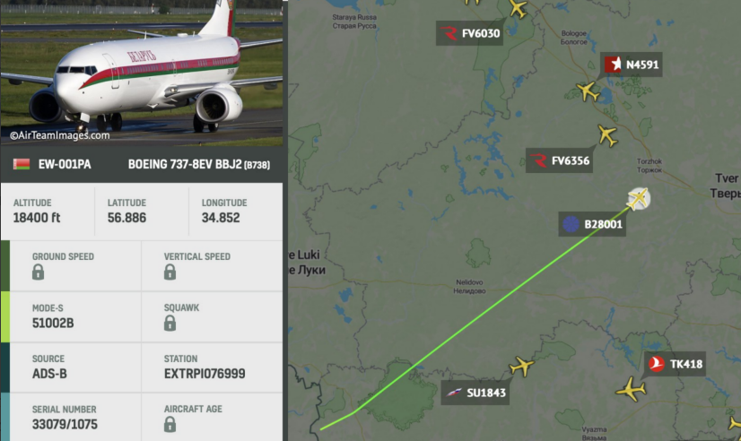 "За нашими даними, сьогодні о 17:17 урядовий Boeing 737-800 з реєстраційним номером EW-001PA вилетів з аеропорту Орша і попрямував у бік РФ", - зазначає він.