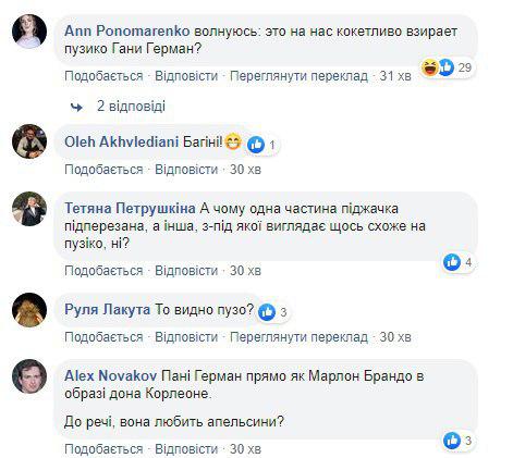 Користувачів соцмереж здивував наполовину підперезаний піджак Герман, з-під якого було видно її живіт.