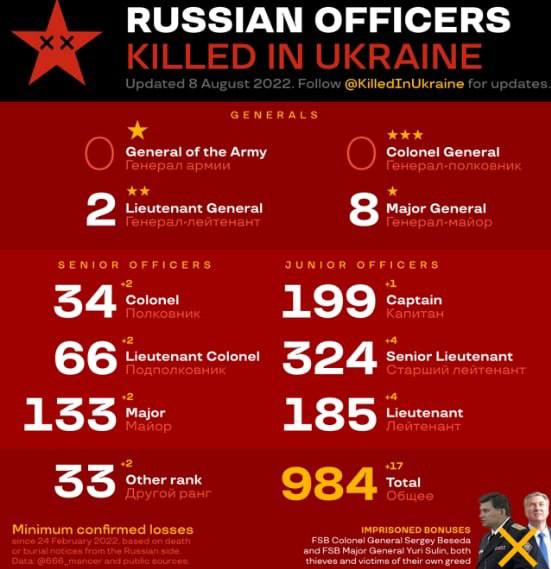 09:50 ЗСУ впевнено наближаються до цифри у 1000 ліквідованих офіцерів-окупантів.