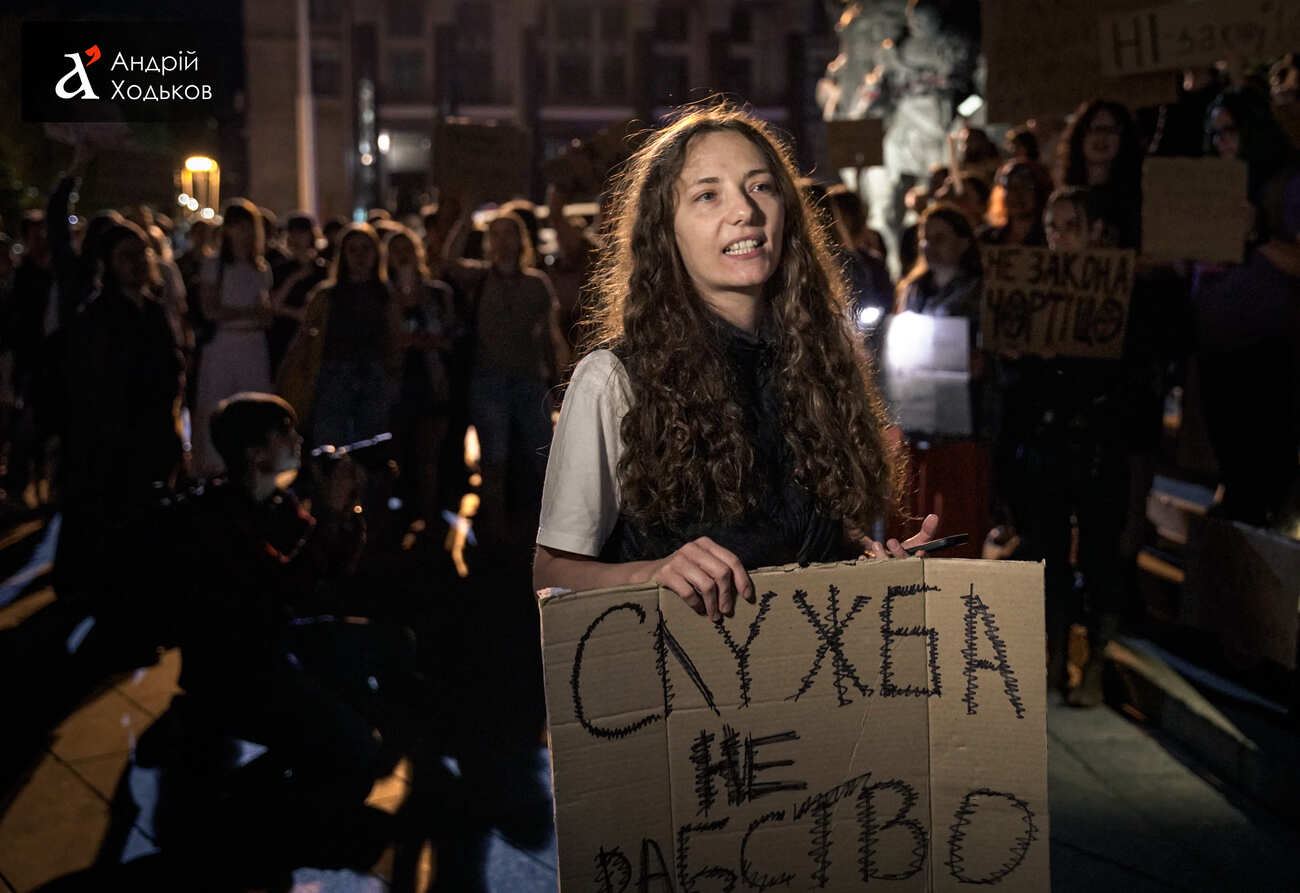 На акцію проти законопроєкту про відповідальність за СЗЧ прийшла народна депутатка Мар'яна Безугла
