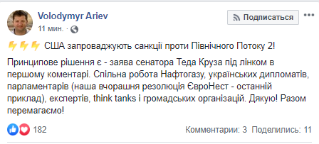 Також ситуацію прокоментував народний депутат України Володимир Ар'єв, який привітав рішення США.