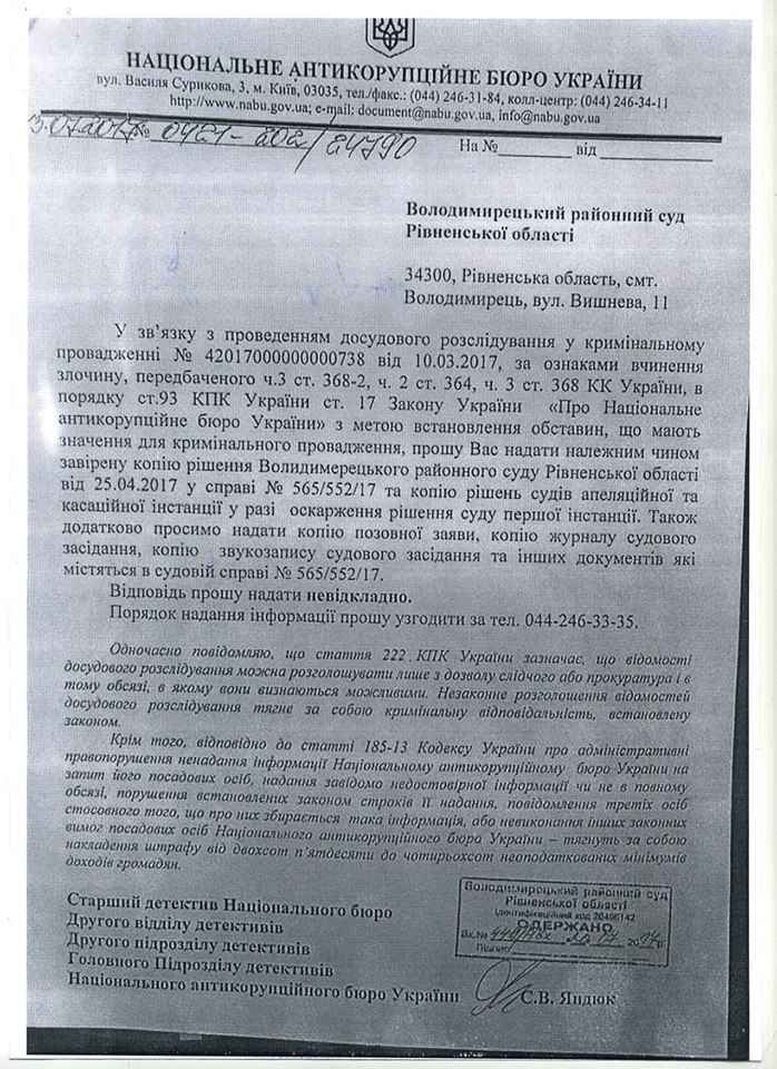 За словами Демчини, цю інформацію йому вдалося дізнатися під час розслідування протиправних дій НАБУ.