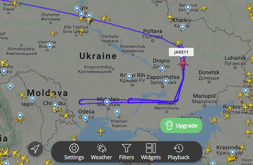 Другий літак-розвідник JAKE 11 вилетів зі сторони США та залетів до України через захід країни. Через центр та північ, він курсував на схід України. На даний момент літак робить кола неподалік кордону донецької області, також літаючи і в південну частину.