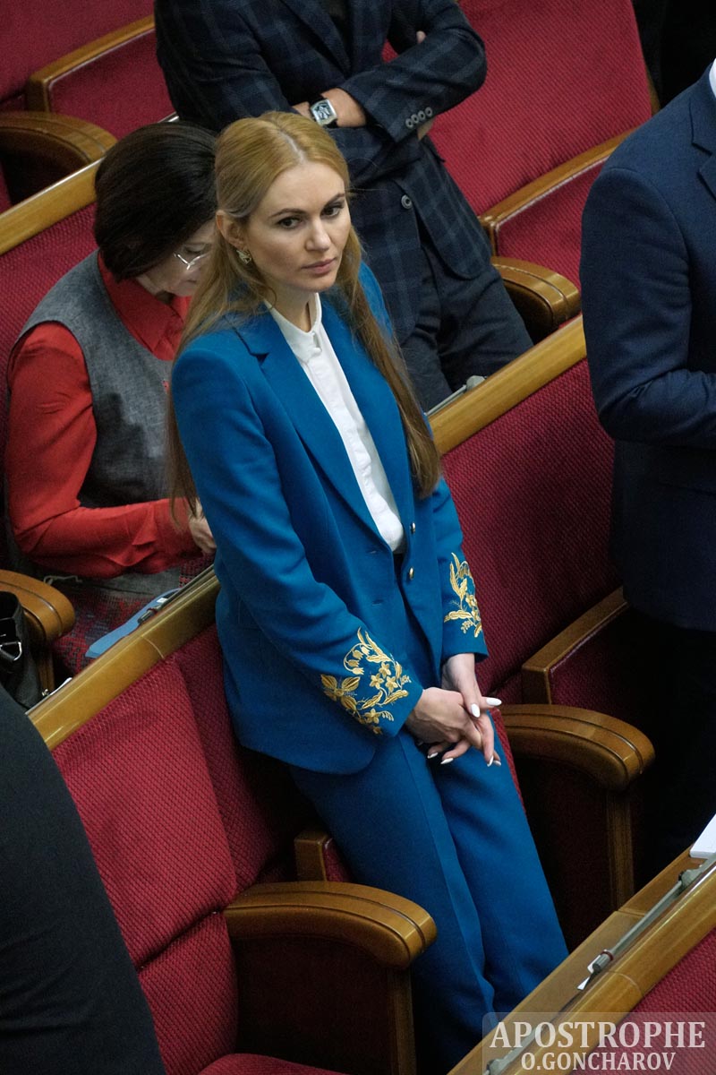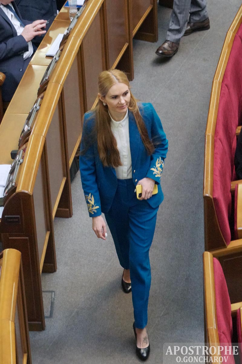 Народний депутат з групи "За Майбутнє" Анна Скороход, яку раніше виключили з фракції "Слуга народу", прийшла на засідання Верховної Ради в стильному брючному костюмі глибокого блакитного кольору.