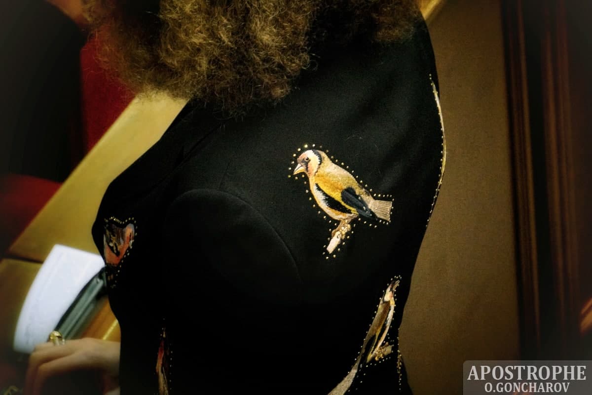 Народний депутат від "Опозиційної платформи - За життя" (ОПЗЖ) Юлія Льовочкіна прийшла на роботу у Верховну Раду в костюмі з "пташиним" принтом.