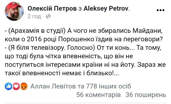 У мережах говорять, що глава держави не повинен йти на жодні компроміси з приводу збройного конфлікту на сході України.