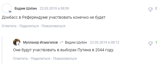 Думки росіян розділилися. Деякі з них підтримують ідею Зеленського і називають його найбільш демократичним президентом. Інші ж переконані, що новий глава України таким чином перекладає відповідальність на українців.