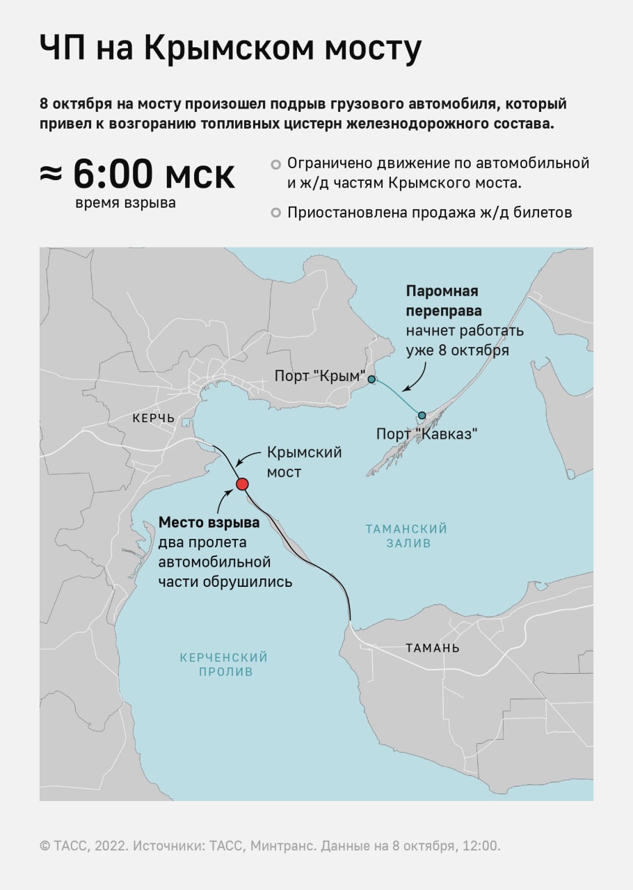 07:28 На Керченському мосту стався вибух. Світиться цистерна з паливом.