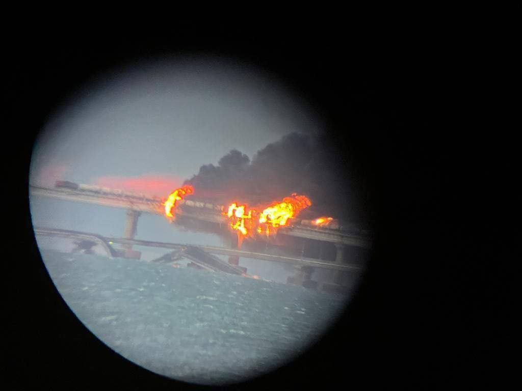 22:42 У мережі з'явилося нове фото наслідків вибуху Кримського мосту.