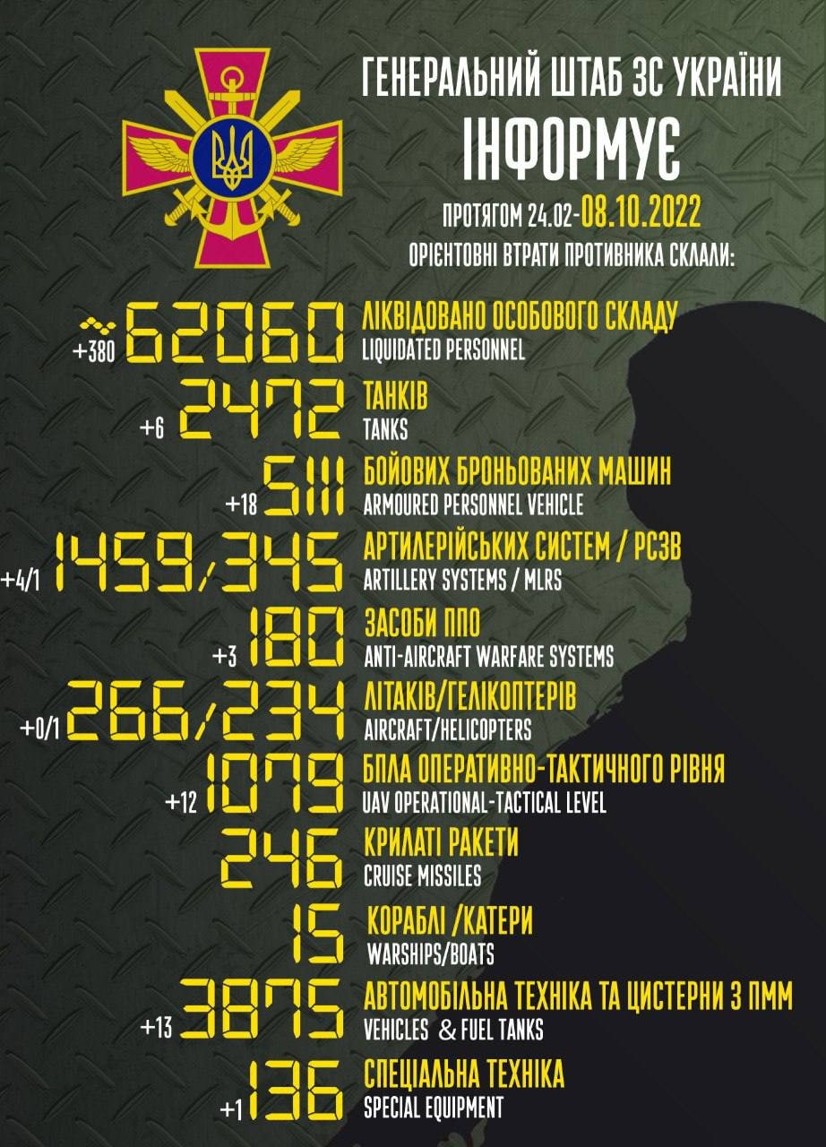 10:08 Вже ліквідовано понад 62 тисячі окупантів.