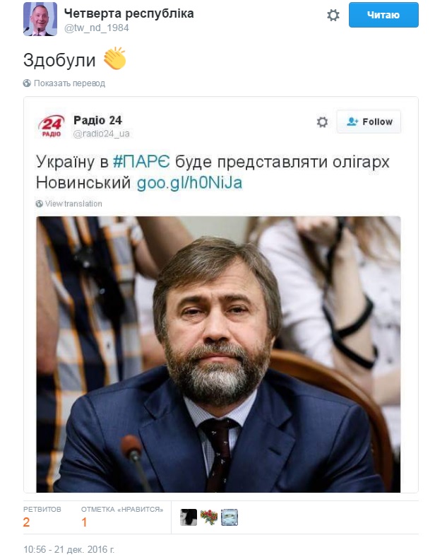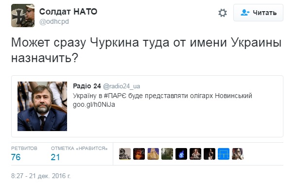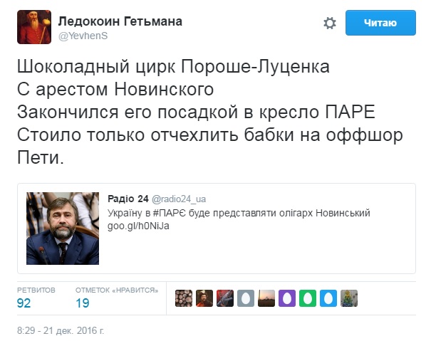 Включення Новинського делегацію ПАРЄ обурило українських користувачів Twitter.