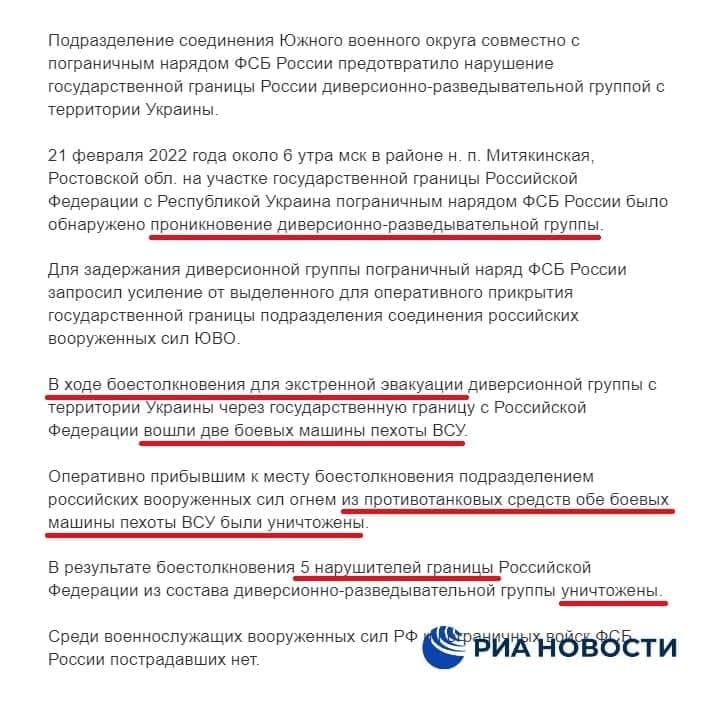Російські ЗМІ не посоромилися заявити, що п'ятеро диверсантів було знищено, натомість у російських військових постраждалих нема.
