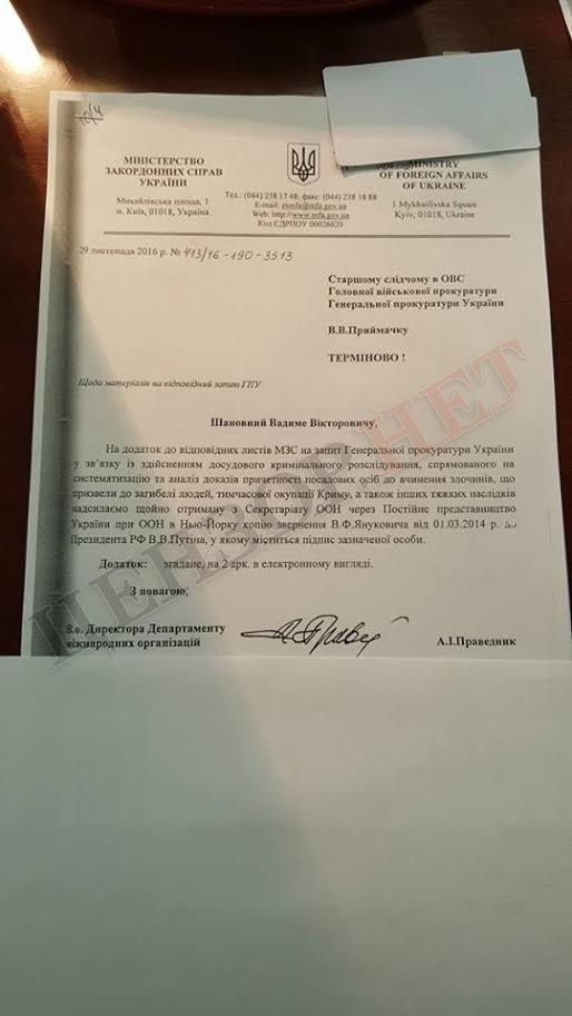 У правоохоронних органах заявили, що листи Януковича і Чуркіна знаходяться в матеріалах справи стосовно екс-президента України про державну зраду з листопада 2016 року.