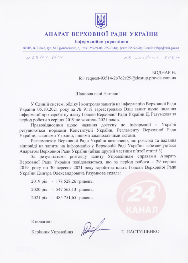 У 2019 році Разумков пропрацював спікером всього 4 місяці, тому зарплата за той рік значно менша.