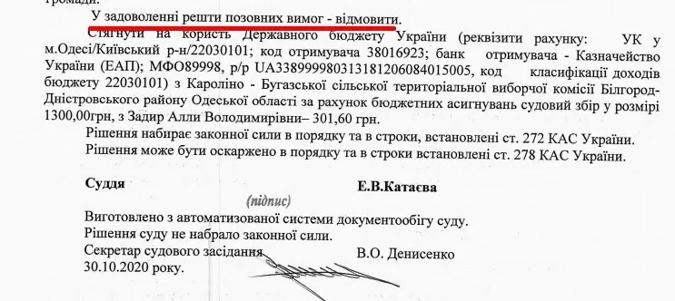 Нагадаємо, координатор "Опори" Ольга Айвазовська в Facebook оголосила результати виборів в громаді недійсними. Її твердження засновані на вирішенні Одеського окружного адміністративного суду за позовом екс-кандидата на пост сільського голови Кароліно-Бугазькій ОТГ Юрія Чередниченка. Свою заяву Айвазовська зробила, не чекаючи рішення апеляційної інстанції.
