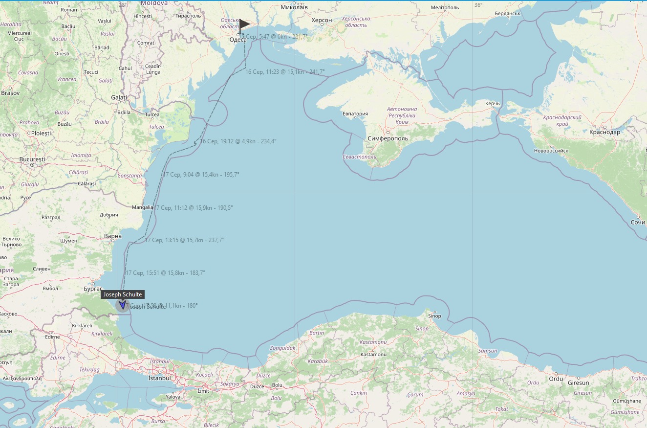 В середу, 16 серпня, цивільне вантажне судно Joseph Schulte під прапором Гонконгу вийшло з Одеського порту, кинувши виклик спробам Росії закрити доступ України до Чорного моря, й вже досягло турецьких вод.