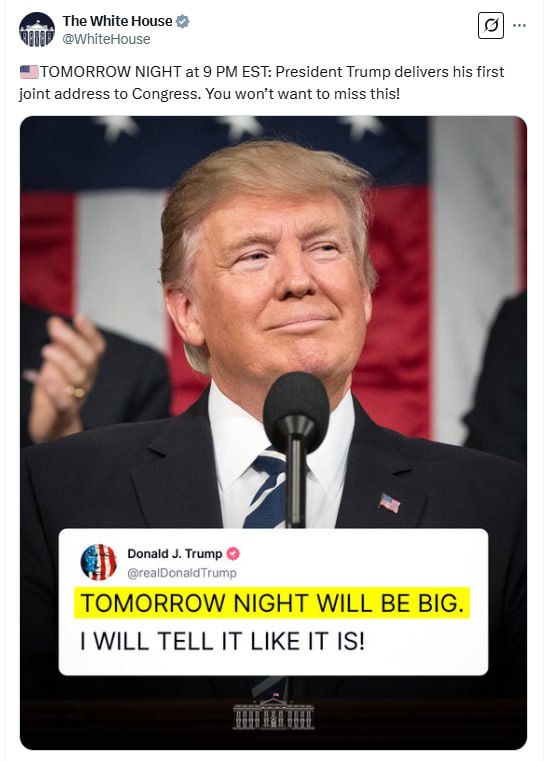 Сам Трамп у своїй соцмережі Truth Social анонсував це так: "Завтрашній вечір буде великим. Я розкажу все, як є!", не уточнивши деталей.