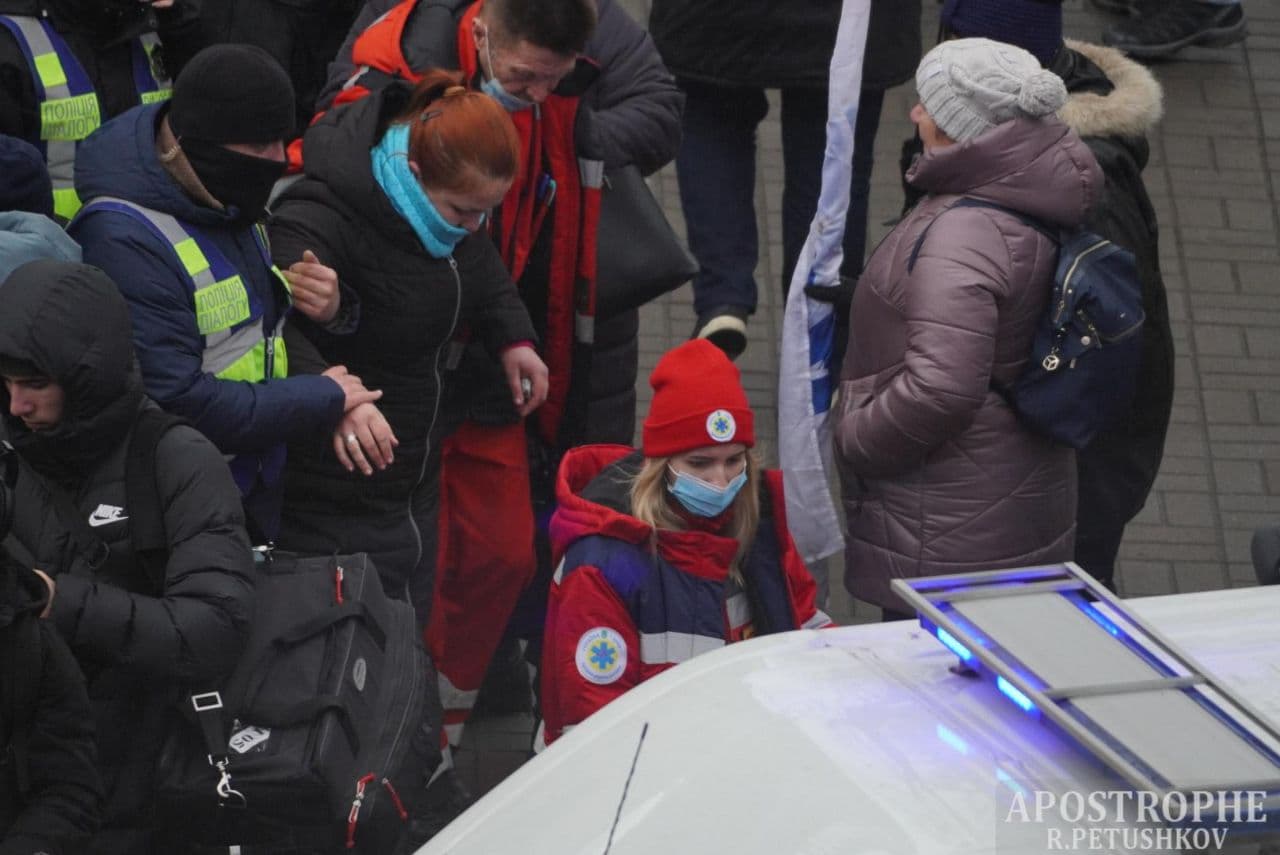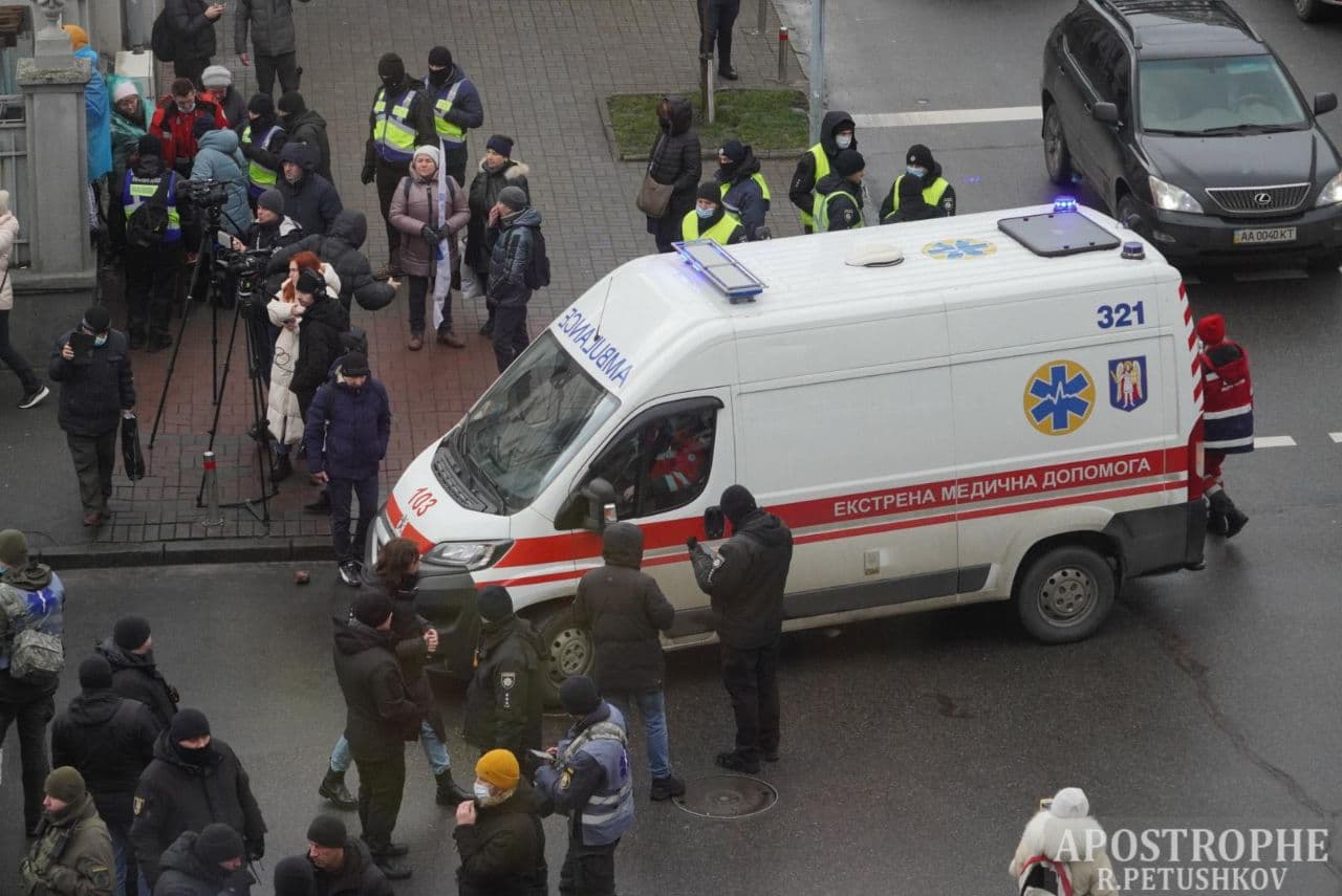 У ході зіткнення силовиків і дрібних підприємців постраждала жінка. Допомогу їй надали медики з карети швидкої.