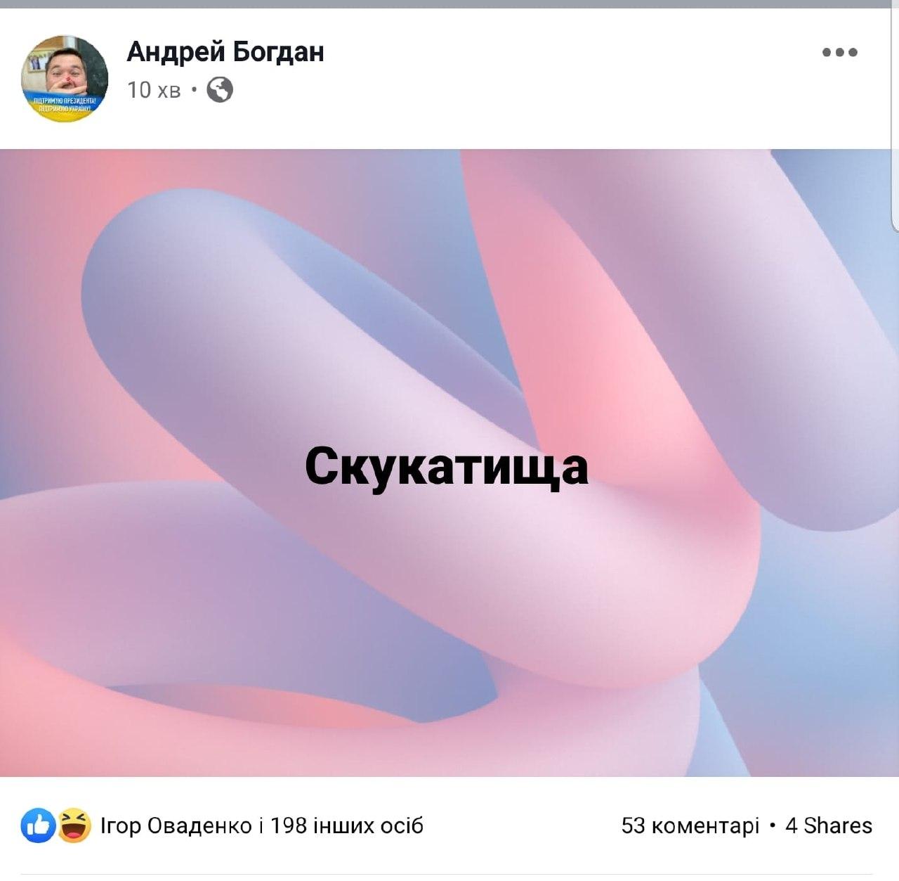 У мережі активно обговорюють першу за довгий час публікацію глави Офісу президента України Андрія Богдана в соціальній мережі.