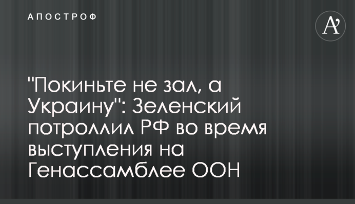 Під час виступу на Генасамблеї ООН президент Володимир Зеленський порадив Росії, не залишати зал під час розмов про агресію і окупації, а покинути територію України.