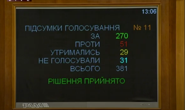270 депутатів проголосували за законопроект № 2571-д "Про внесення змін до деяких законодавчих актів України щодо удосконалення деяких механізмів регулювання банківської діяльності", який напередодні закликав підтримати президент Володимир Зеленський.