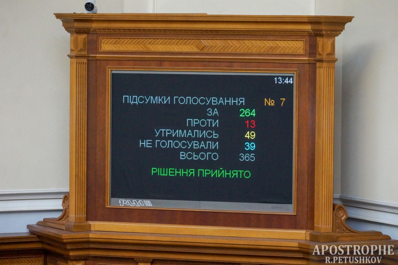 За відповідний законопроект №4284 проголосували 264 парламентарі, повідомляє кореспондент "Апострофа" з Ради.