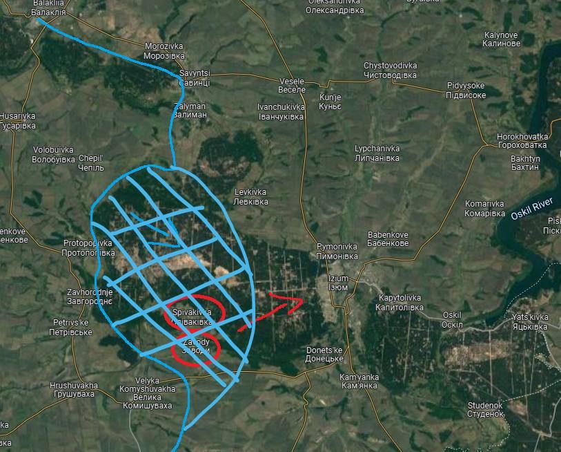 20:40 Українські військові вибили окупантів з лісу на околицях Ізюму, повідомляє журналіст Андрій Цаплієнко. Свій короткий пост він супроводив картою місцевості, з якої можна зробити висновок, що під контролем ЗСУ опинилися Співаківка та Заводи, розташовані по обидва боки від Сіверського Донця, а удар спрямовано на Ізюм через село Придонецьке.