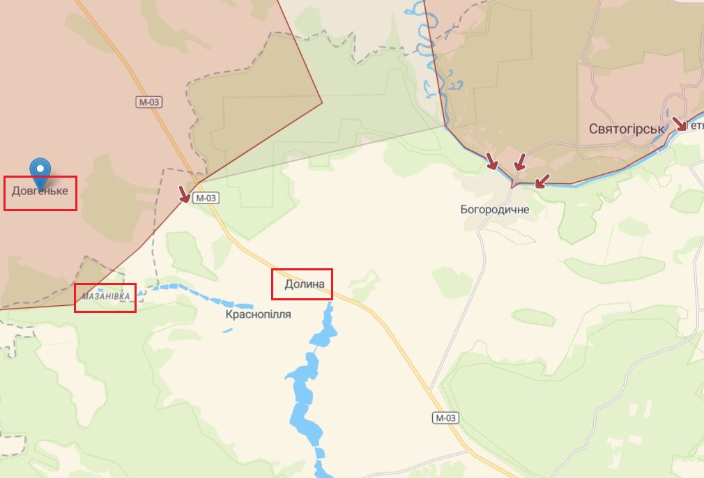 18:40 На Слов'янському напрямку українські воїни успішно відбили ворожі штурмові дії на напрямках Довгеньке – Мазанівка та Довгеньке – Долина.