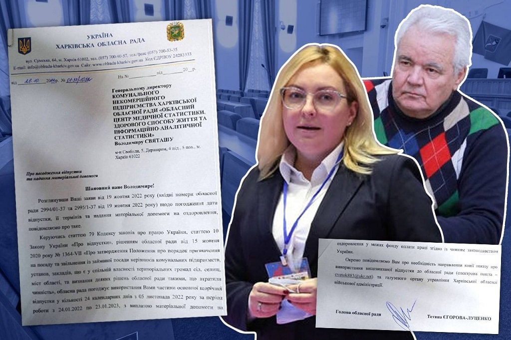Голова Харківської облради Тетяна Єгорова-Луценко погодила відпустку та виплату матеріальної допомоги депутату облради, гендиректору КП "Обласний центр медичної статистики, здорового способу життя та інформаційно-аналітичної статистики" Володимиру Святашу, якого підозрюють у зв'язках з окупантами та мають позбавити мандату громадянин Харківської області.