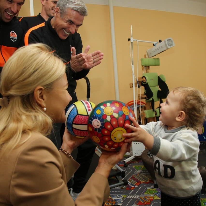 Гості ознайомилися з умовами проживання дітей, побували в кабінетах медичної реабілітації (ЛФК, фізкультура, гідротерапія, басейн) і музичному залі, де поспілкувалися з малюками. Юлія Світлична подарувала будинку дитини медичне обладнання та дитячі ігри. Луїш Каштру, Даріо Срна, Сергій Кривцов і Марлос привезли дітям подарунки від клубу - м'які іграшки, футболки і альбоми.